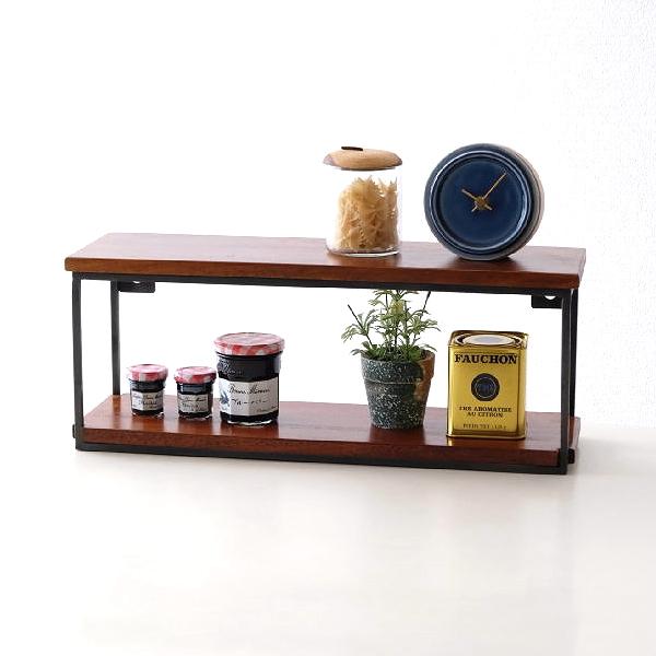 木とアイアンの壁掛け収納棚 スパイスラック 便利でおしゃれなウォールシェルフ ウォールラック ウォールシェルフ 2段 幅90cm 壁掛け棚 壁掛けラック Cdラック cdラック キッチンシェルフ 壁掛け ディスプレイ 壁面収納 洗面所 バス トイレ 木製 カントリー